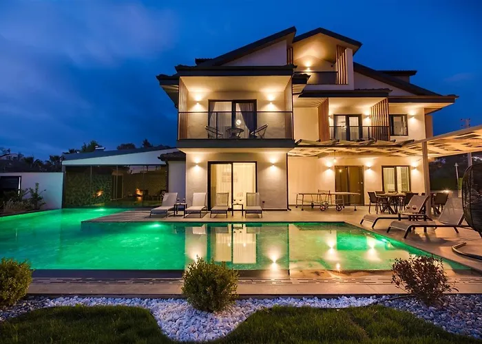 Im Herzen von Fethiye erwartet die Calista 8 Kisilik Lueks Villa Gezer ihre Gäste mit einem unvergleichlichen Erlebnis. Diese luxuriöse Unterkunft bietet eine ideale Mischung aus Komfort und Eleganz, eingebettet in eine atemberaubende Naturlandschaft. Perfekt für Gruppen und Familien, überzeugt die Villa mit einem großzügigen Raumangebot und modernen Annehmlichkeiten.